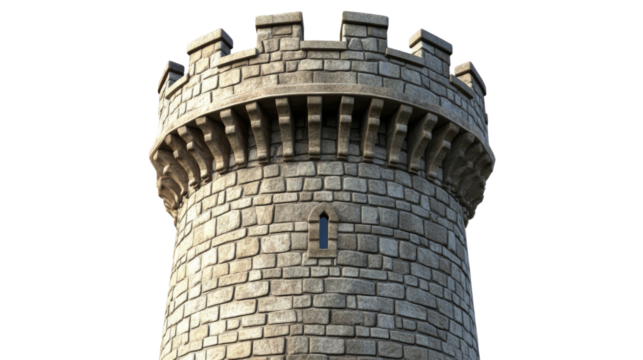 Medieval stone tower reaching for the sky on transparent background