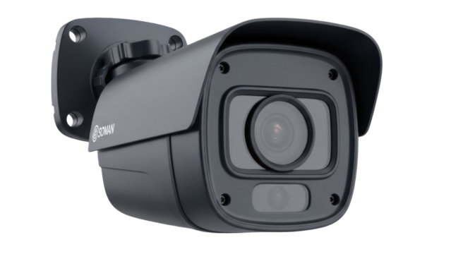 Dark blue security camera PNG isolated on transparent background, surveillance equipment for home safety and crime prevention