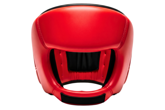 Professional red boxing head guard for martial arts training isolated on a transparent background