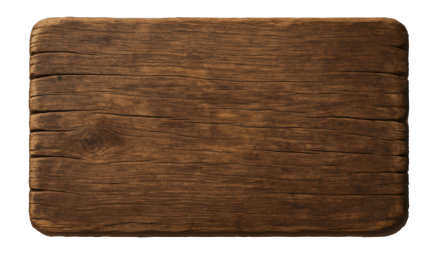Rustic wooden sign on transparent background representing direction guidance or natural aesthetics