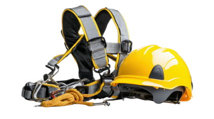 Safety harness and helmet combo background isolated on a Transparent background, PNG file.