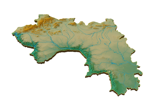 3D Contour Map of Guinea Isolated on Transparent Background Showing Relief and Topography