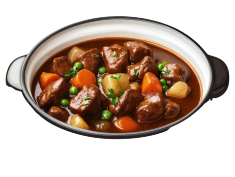 Beef And Guinness Stew isolated on transparent png background.