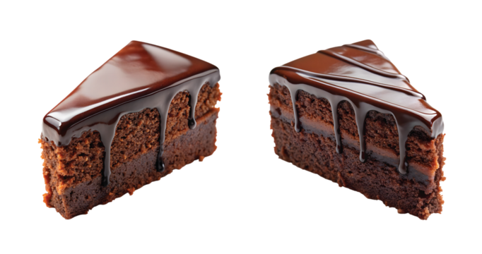 Guinness Chocolate Cake Slice: A single slice of dark Guinness chocolate cake with rich ganache drizzle on top, clean cut, moist texture, PNG style.