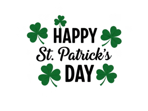 Happy st patricks day with green shamrocks isolated on transparent background