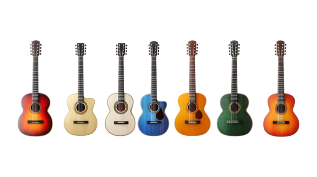 Joyful nerd playing acoustic guitar wearing bowtie over transparent background