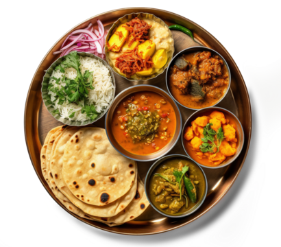 Traditional Gujarati Thali with Assorted Dishes – Transparent PNG