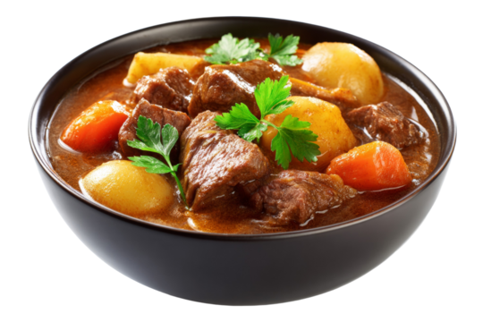 Homemade Hungarian Goulash Stew Isolated on White and Transparent Background