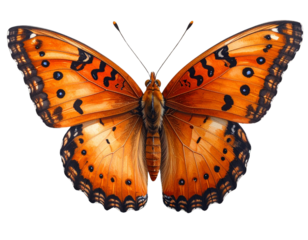 Watercolor Painting of Gulf Fritillary Butterfly with Open Wings, isolated on transparent background PNG