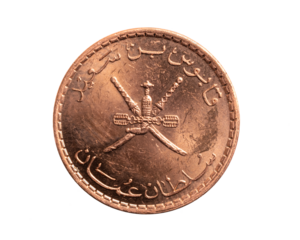 Oman five baiza coin on a white isolated background