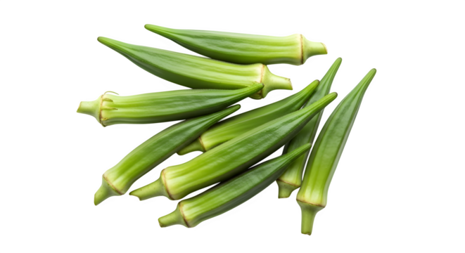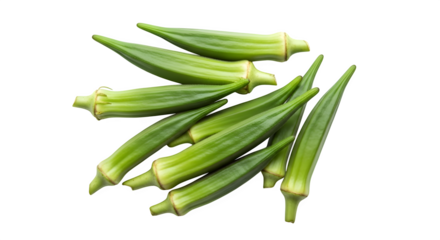 Pile of fresh green okra isolated on transparent background for healthy eating