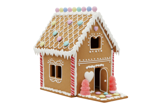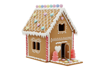 Decorated gingerbread house isolated on transparent background