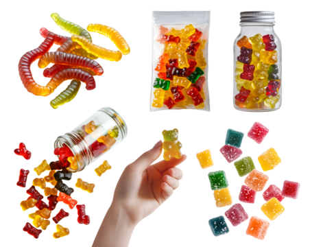 Vibrant Gummies Spilling from a Jar A Delightful CloseUp isolated on transparent background