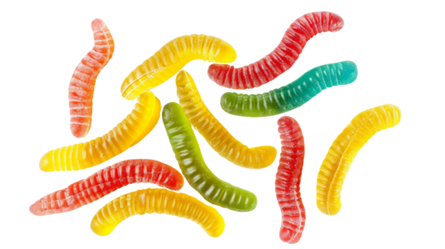 Sour gummy worms isolated on transparent background