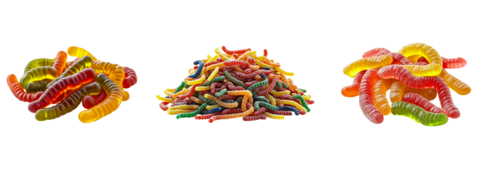 Set of pile of gummy worms isolated on transparent background, png, cutout