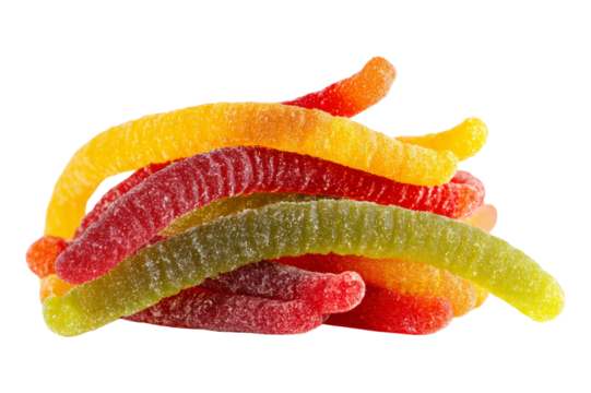 Gummy worms isolated on a transparent background