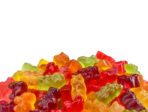 Medical cannabis CBD-infused rainbow gummy candy edibles transparent png background. Cannabis gummy cbd edibles png