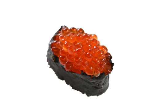 Japanese Ikura Gunkan Sushi with Red Caviar, isolated on white transparent background