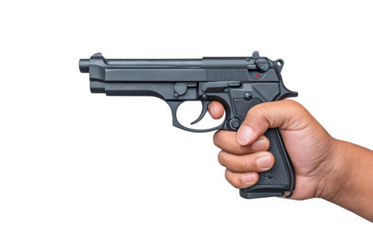 Isometric woman with a gun in his hand iolated on white. Male policeman, spy or criminal holding. Front view