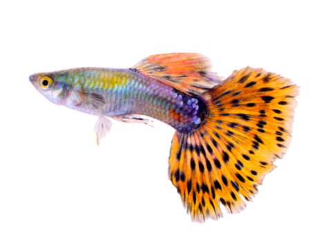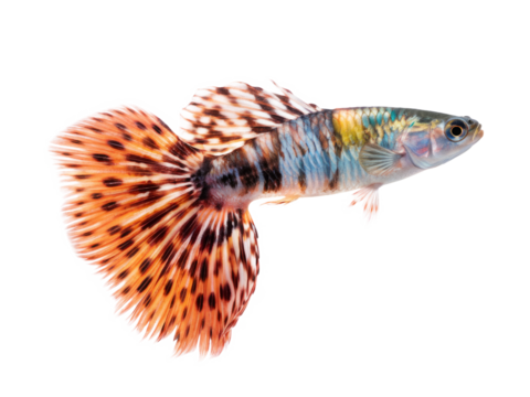 Colorful Guppy Fish with Large Orange Tail Isolated on Transparent Background