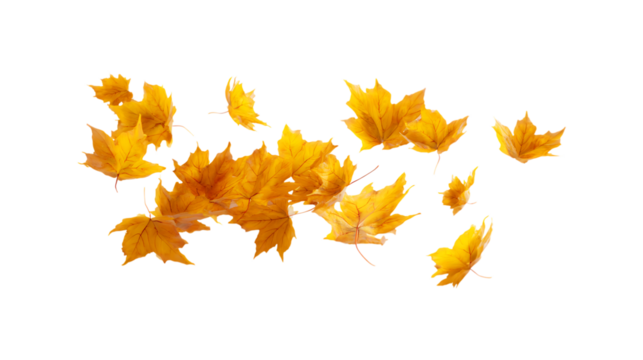 Falling autumn leaves scatter in a gust of wind nature's colorful display transparent background