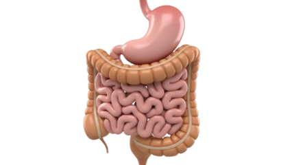 Human digestive system isolated PNG, stomach, large and small intestine anatomy for medical and educational use on transparent background
