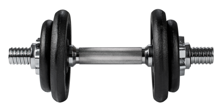 Black dumbbell illustration on transparent background for fitness and gym