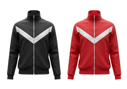 Blank Track Jacket Mockup, Black and Red with White Chevron Isolated on transparent background