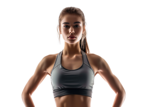 A stylish female athlete in sportswear smiling and feeling happy ready and excited for a workout with an active style isolated on a png background.