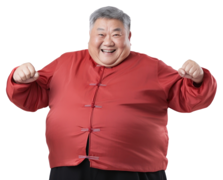 Transparent background man posing in formal attire, striking humorous pose