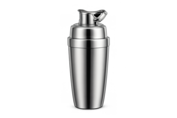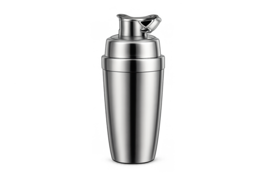 Stainless steel protein shaker bottle for fitness drinks, gym supplements, and healthy lifestyle, transparent background