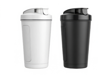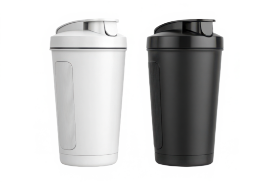 Two shaker bottles one white one black isolated on transparent background