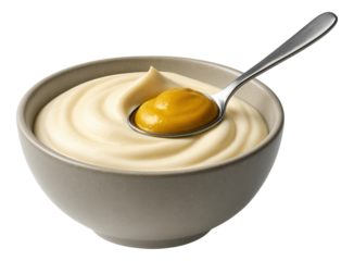 Smiling female chef mixing flour with transparent background