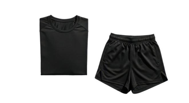 Black athletic set featuring a folded tank top and running shorts.