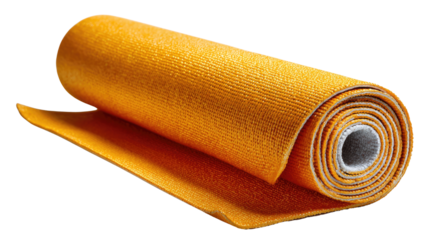 Rolled Yoga Mat: An eye-level, close-up shot of a rolled-up yoga mat, offering a tactile and visual appeal, showcasing its potential for mindfulness practice, stretching, and relaxation.