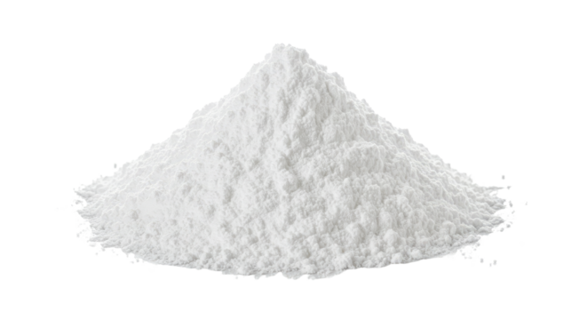 A pile of white powder isolated on transparent background, with a dynamic splash effect suggesting movement and dispersion