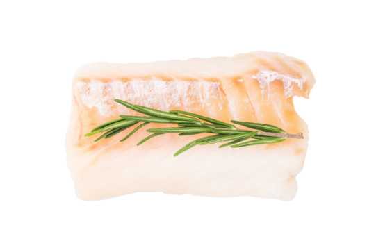 Top view of haddock fillet isolated on transparent background, perfect for seafood and healthy food visuals..
