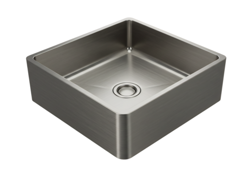モダンなステンレス製スクエア型流し台、清潔感漂うデザイン