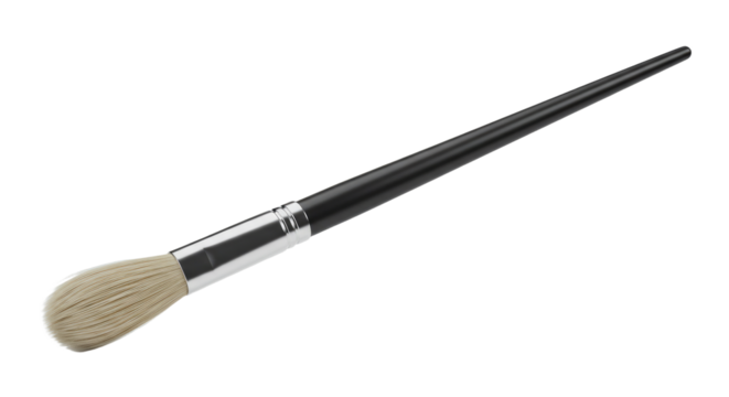 Black handled paint brush with light beige bristles.