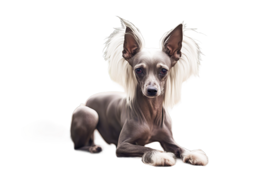 Cute American Hairless Terrier Dog isolated on white Transparent background. Resting Dog Lying Down Isolated on White Background