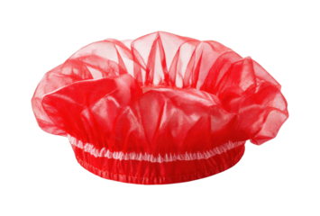 Red hairnet for culinary use in kitchen food preparation view isolated on transparent background, png
