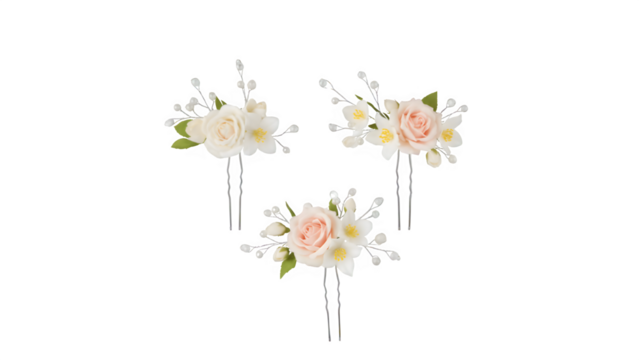 Bridal Flower Hair Pins Set Jasmine and Rose Petals Isolated on Transparent Background PNG