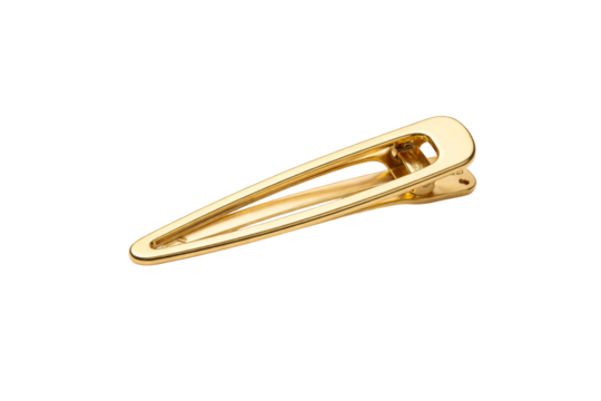 Elegant golden hair clip featuring a sleek and contemporary design, suitable for enhancing personal style, luxury fashion product displays, and sophisticated beauty advertisements.