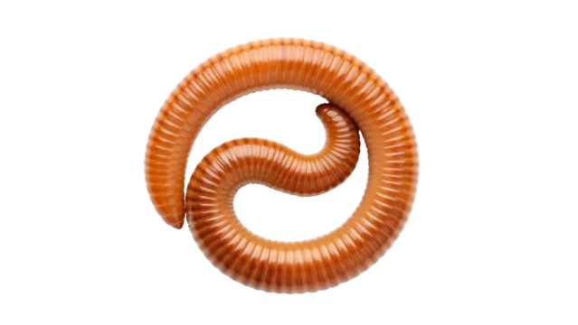 Isolated millipede curled up in a spiral shape, an insect with many legs and a segmented body