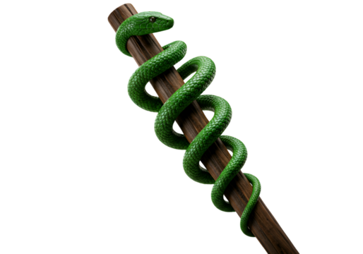 3D Illustration Of A Green Snake Coiled Around A Wooden Branch On Black Background