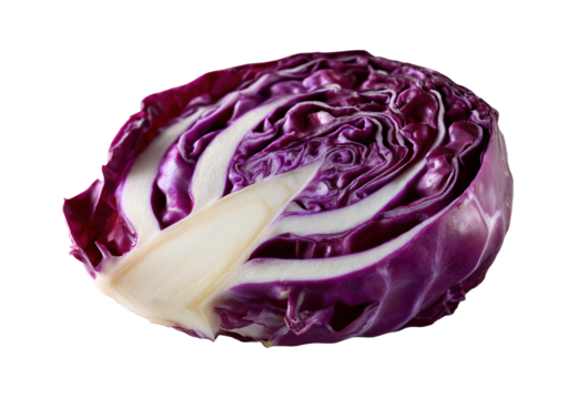 Demi chou rouge coupé révélant sa structure en spirale violette