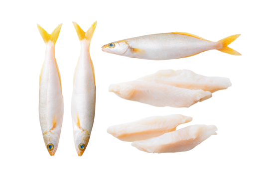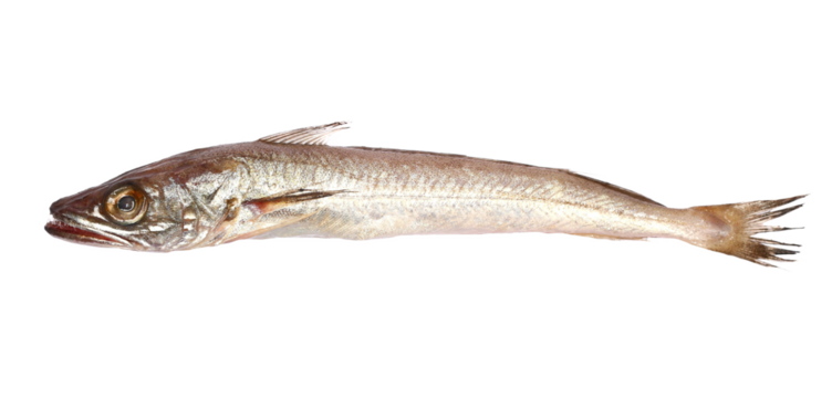 A detailed close-up of a Pacific Hake fish, isolated on a transparent background. background removed