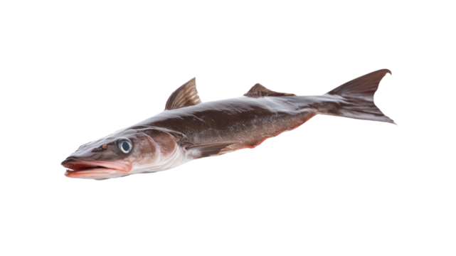 Raw hake fish cutout isolated on transparent background