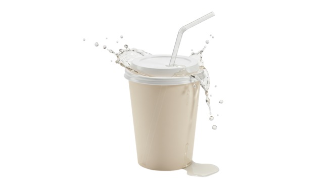 Isolated Milkshake in Disposable Cup Splashing Outwards