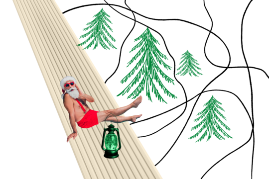Composite photo collage of astonished old man santa claus winter resort pool party sunbath new year haked isolated on painted background